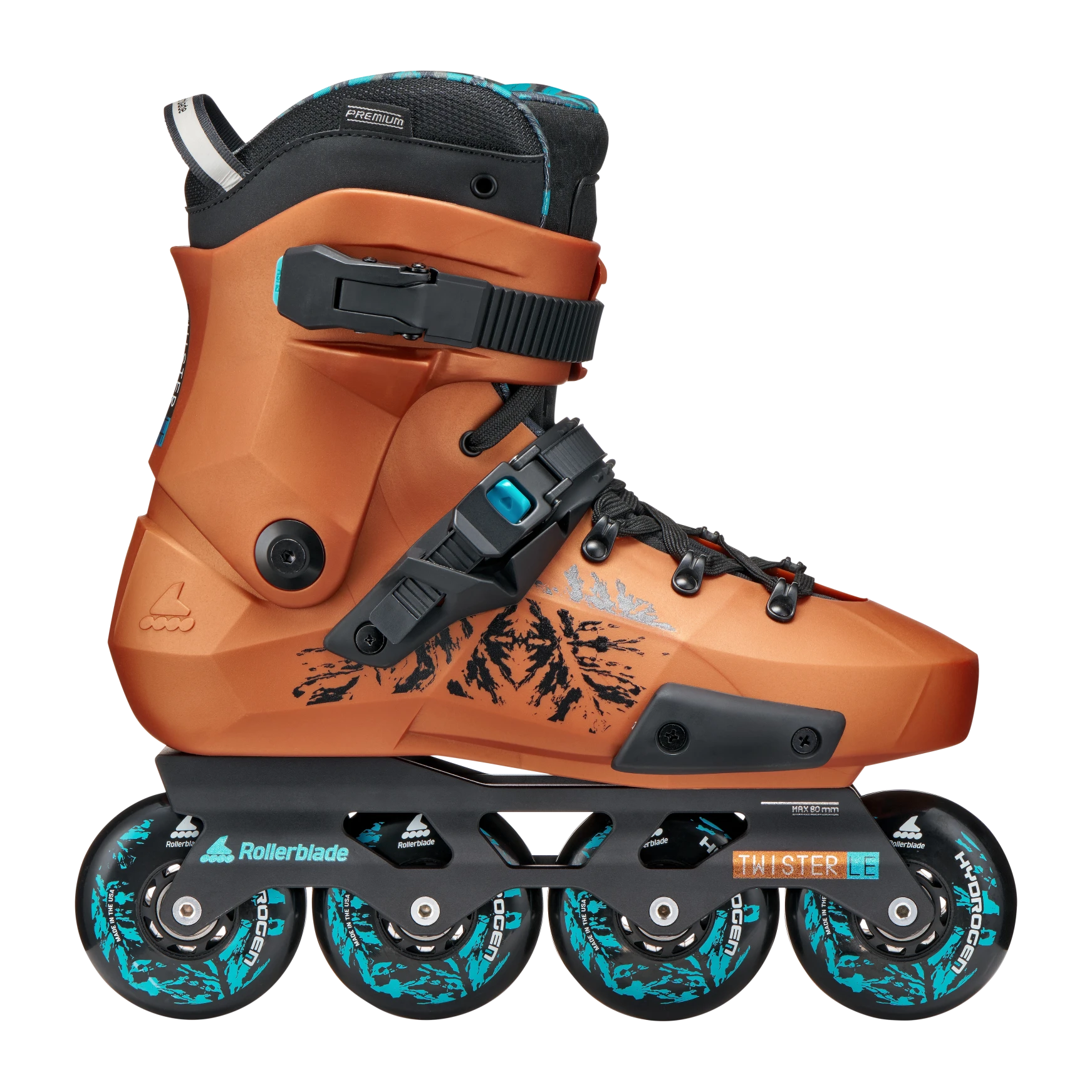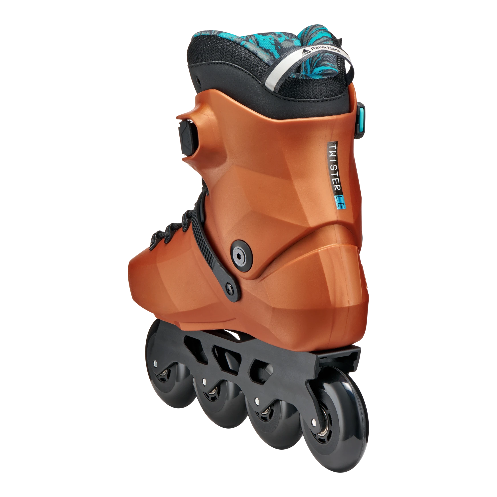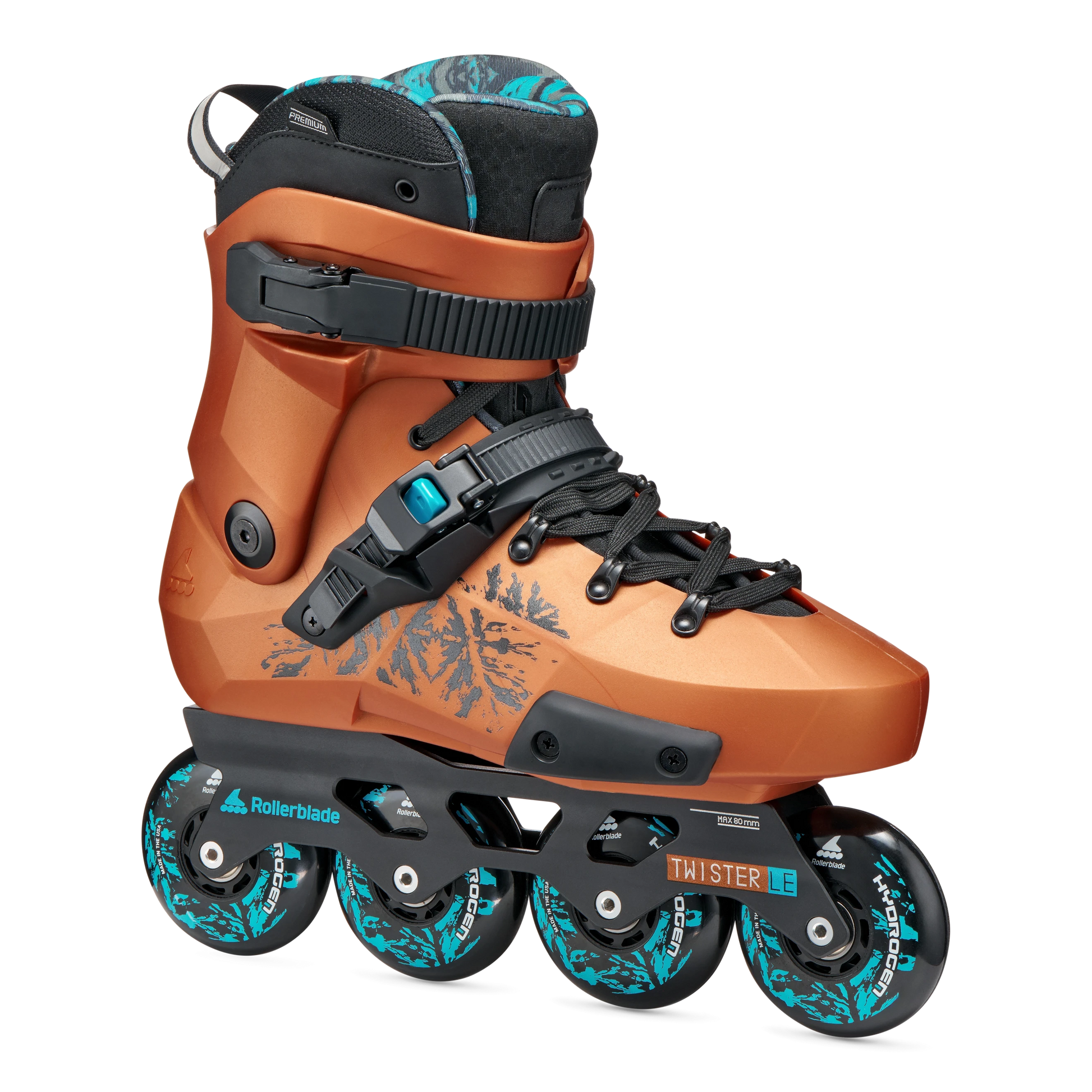 Twister LE is a durable urban skate that also has plenty of features to ensure comfort and stability on city streets. The all new fit features a modified, lighter shell and a footboard sizer, which allows skaters to ensure a performance fit. The Skate Liner Plus with Performance Skate Insole Plus improves the skate stance and skateability with upgraded cushioning, improved wrapping, more breathability and shock-absorbing padding in the heel. The V-cut liner ensures additional range of motion while the Comfort Flex Tongue facilitates support and flex. The secure closure system includes a locking cuff buckle, 45 degree micro-buckle and extended lacing into the liner; Anti-Torsion Box technology utilizes aluminum plates and team up with the 243mm alu frames for maximum power transfer and control. 80mm Hydrogen wheels paired with ILQ-9 Classic Plus bearings provide excellent grip and speed. The Twister LE is an excellent combination of premium fit, superior support and advanced maneuverability.