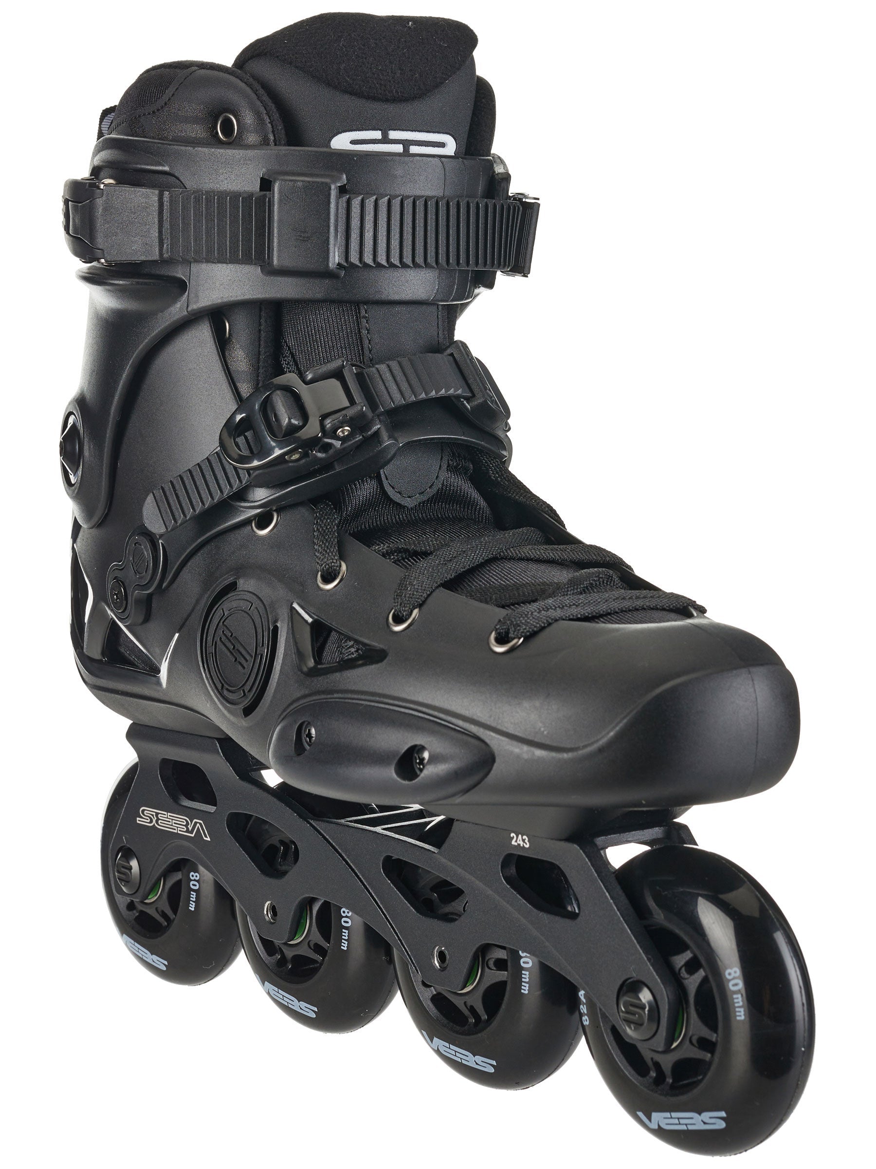 The Seba E3 80 Premium Skates in Black have a redesigned shell with more security and rockerable frames. X2R frames have rockerable axles in the outer positions and a full flat 4x80mm wheel configuration that you can rocker to your liking, or not at all! The aluminum frames are pretty versatile too as they have slots to adjust mounting laterally.